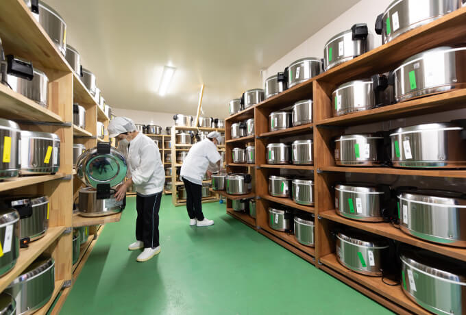 実は、仕入先や仕入れた時期によって玄米の水分含有量は変化します。そのため、仕入れ後はまず水分含有量を計り、水の量を調整することで品質を一定に保っています。